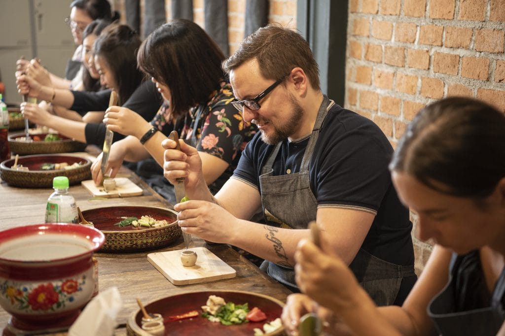 Foreigners attending Thai Cooking ClassMorning - Take a morning dive or snorkel trip off Koh Samui's east coast. The waters around Koh Tan and Koh Matsum are excellent for beginners and certified divers alike — coral gardens, sergeant major fish, and the occasional reef shark if you're lucky. Several operators offer day trips from the main piers.