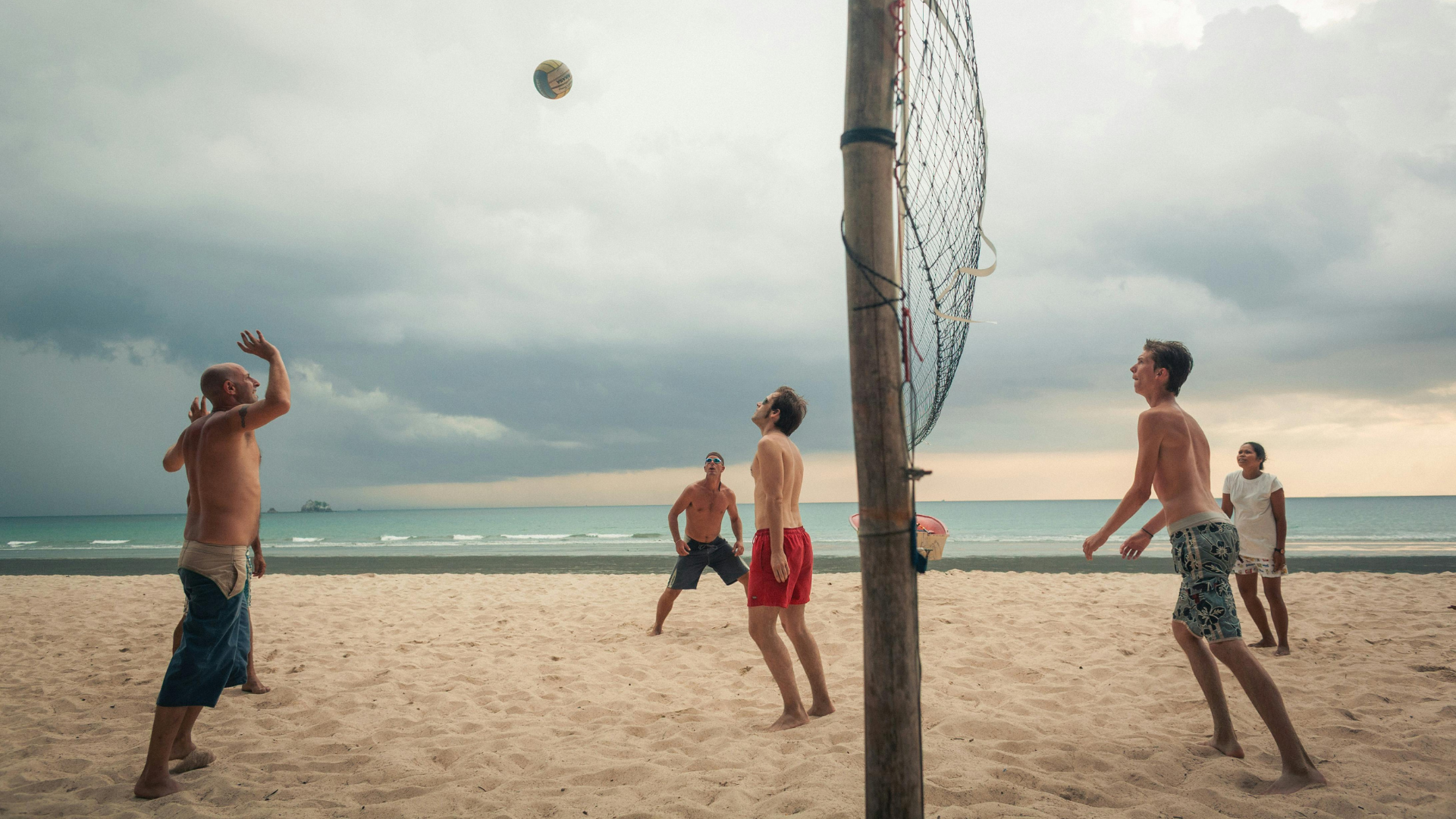 A group of friends playing volleyball on the beachGetting around - Rent scooters or hire a driver for the week. Songthaews (shared pickup trucks) are cheap but slow. For a group, a rented van or private driver makes sense.
